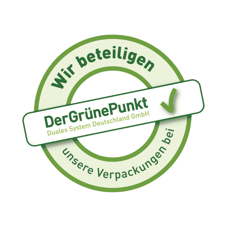 Mit diesem Logo möchten wir zeigen, dass wir Kunde bei Der Grüne Punkt – Duales System Deutschland GmbH sind und unsere Verkaufsverpackungen für Deutschland am dualen System Der Grüne Punkt beteiligen.